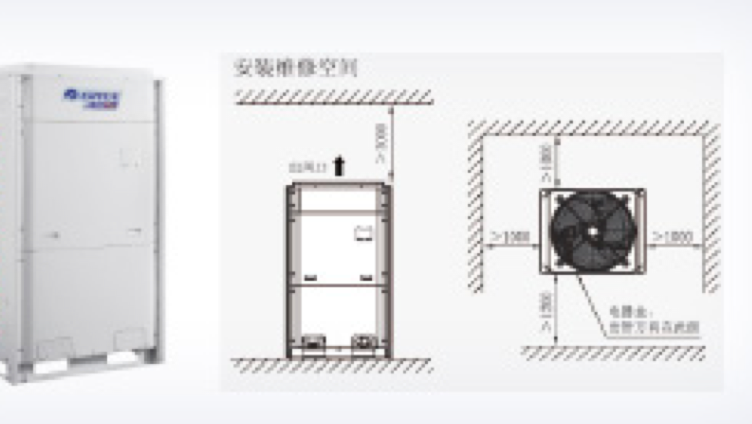 3.室外機(jī)是散熱設(shè)備,務(wù)必確保安裝位置通風(fēng)流暢。以免影響使用效果。要求出風(fēng)無障礙,如周圍空間為開放空間,機(jī)組頂部距頂墻1500mm以上;如非開放空間,或距頂墻不足1500mm,需接回風(fēng)管。
