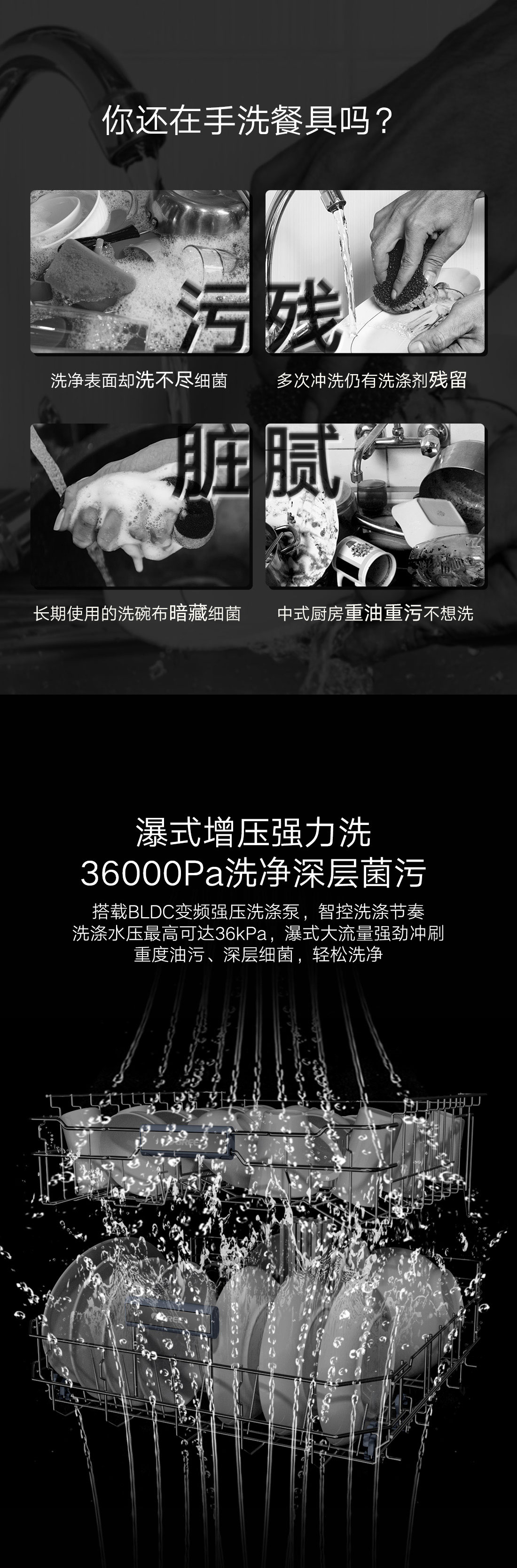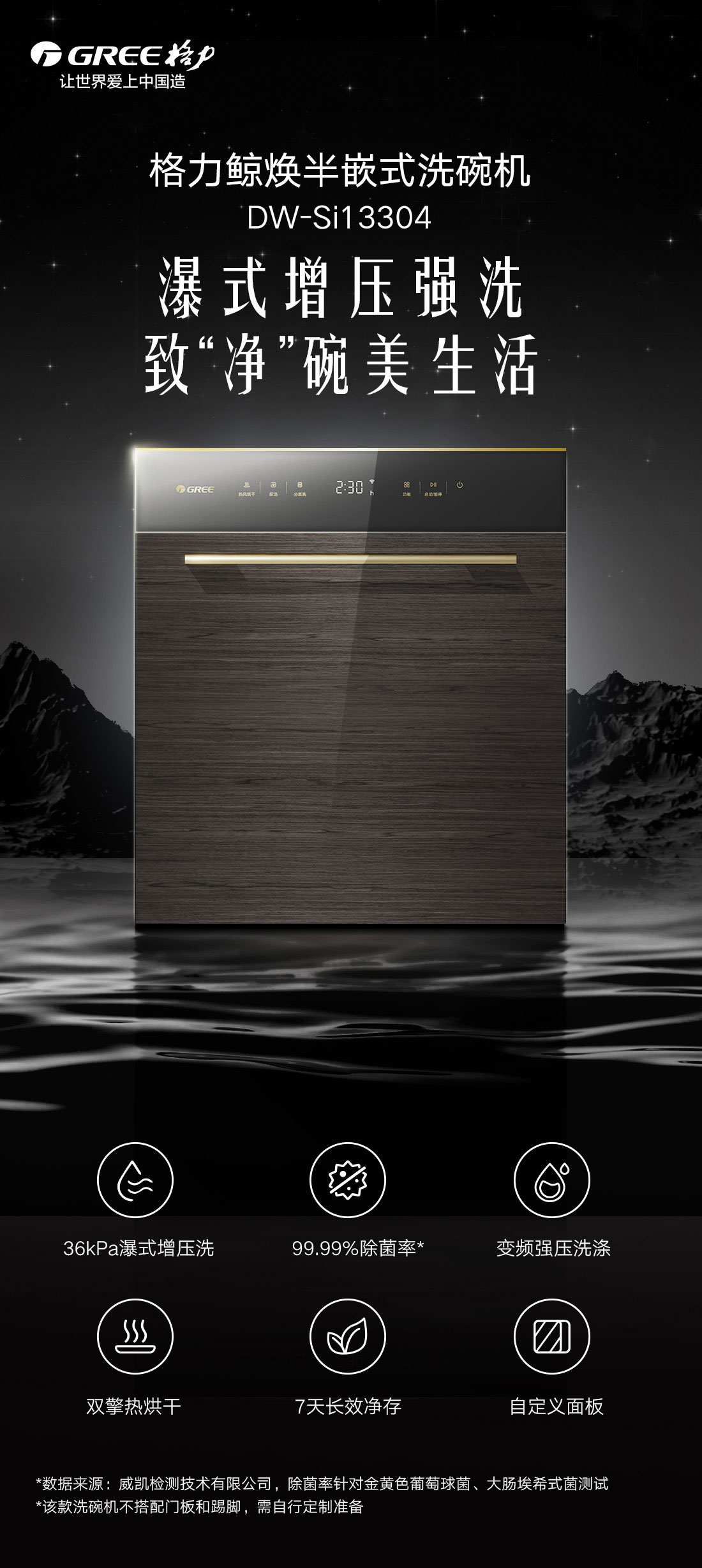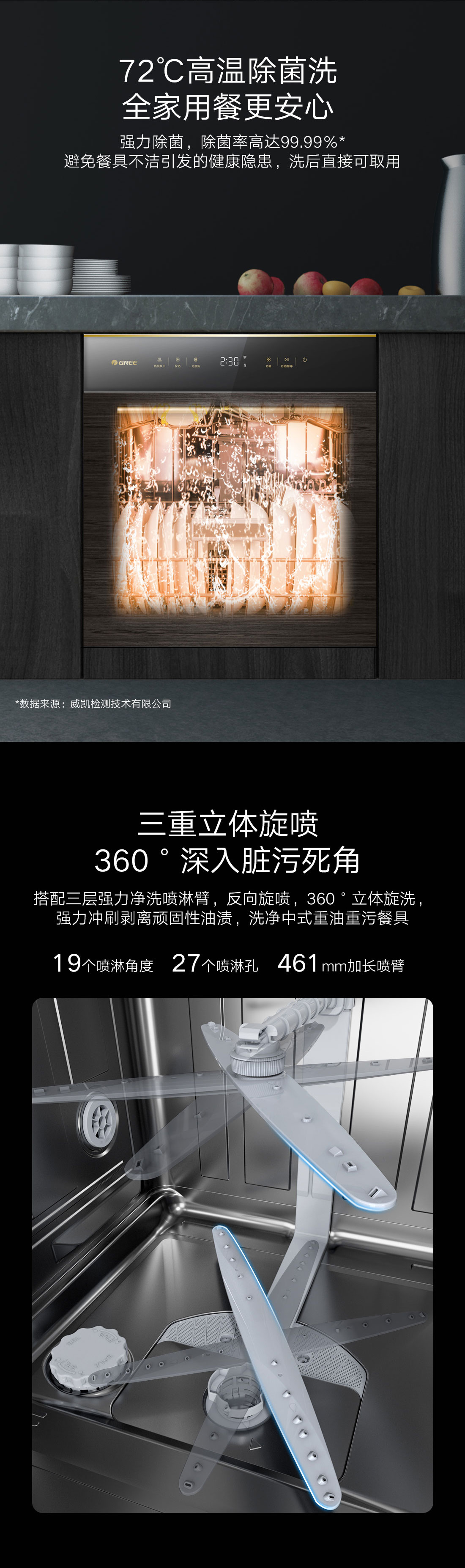 搭載瀑式增壓強洗科技,36KPa洗凈深層菌污,除菌率達(dá)99.99%;洗烘除存一體,存放7天也干爽
