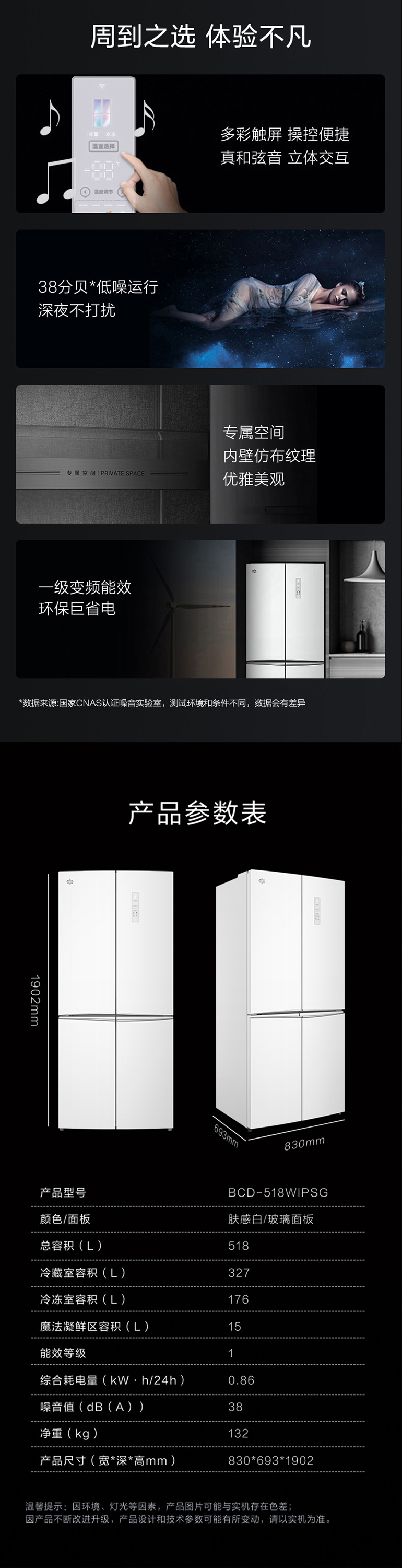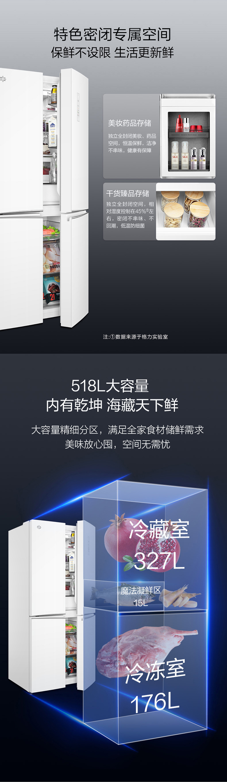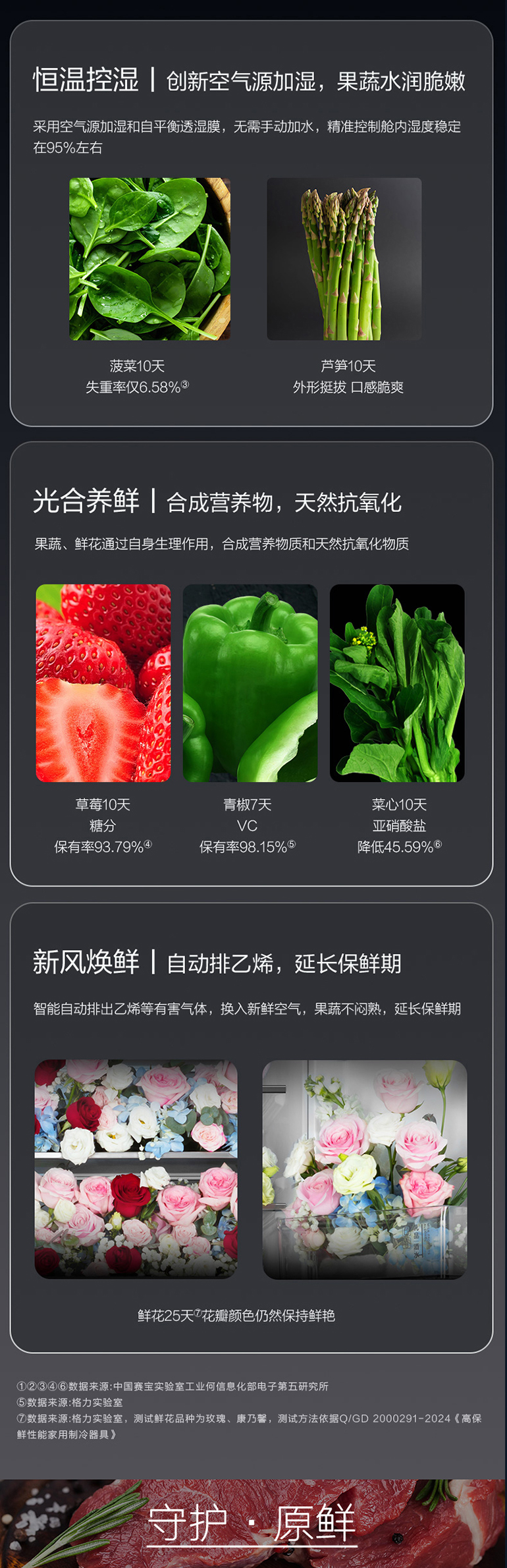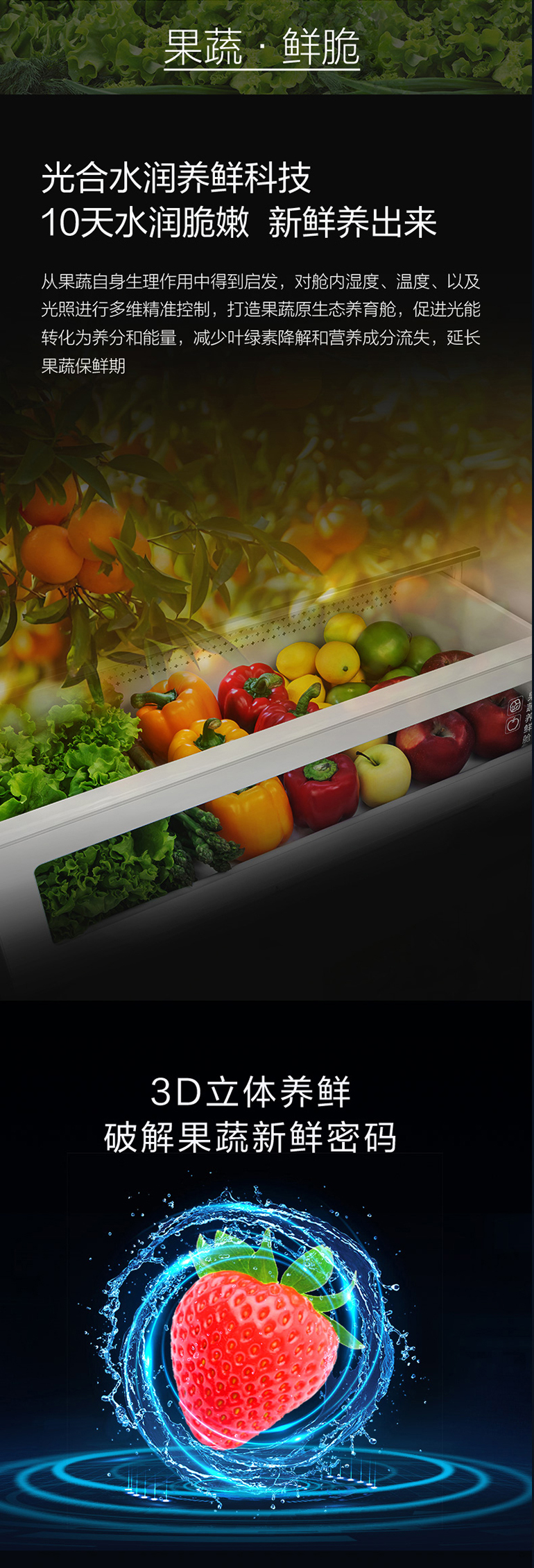-38℃超凍鎖鮮;光合水潤(rùn)養(yǎng)鮮;嫩凍凝鮮2.0;HCP全時(shí)除菌凈味