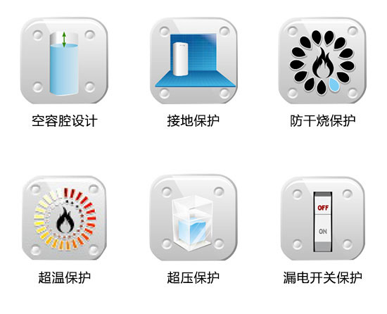 配有漏電開關保護、防電管設計、意外漏電保護、停水防倒流保護、超壓保護等多項保護功能,讓您使用安全無憂。 |