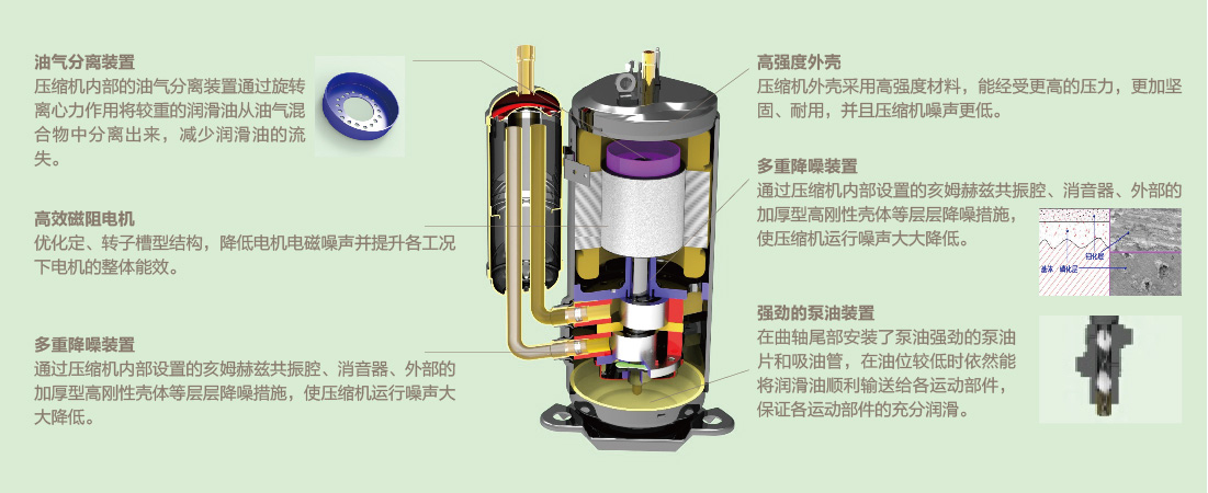 外機(jī)、內(nèi)機(jī)均采用直流電機(jī),相對普通電機(jī)效率提高30%以上;電機(jī)在高溫高濕環(huán)境下能持續(xù)穩(wěn)定運行,內(nèi)電機(jī)在-20℃~40℃、外電機(jī)在-20℃~60℃范圍內(nèi)均可持續(xù)穩(wěn)定運行。 |
